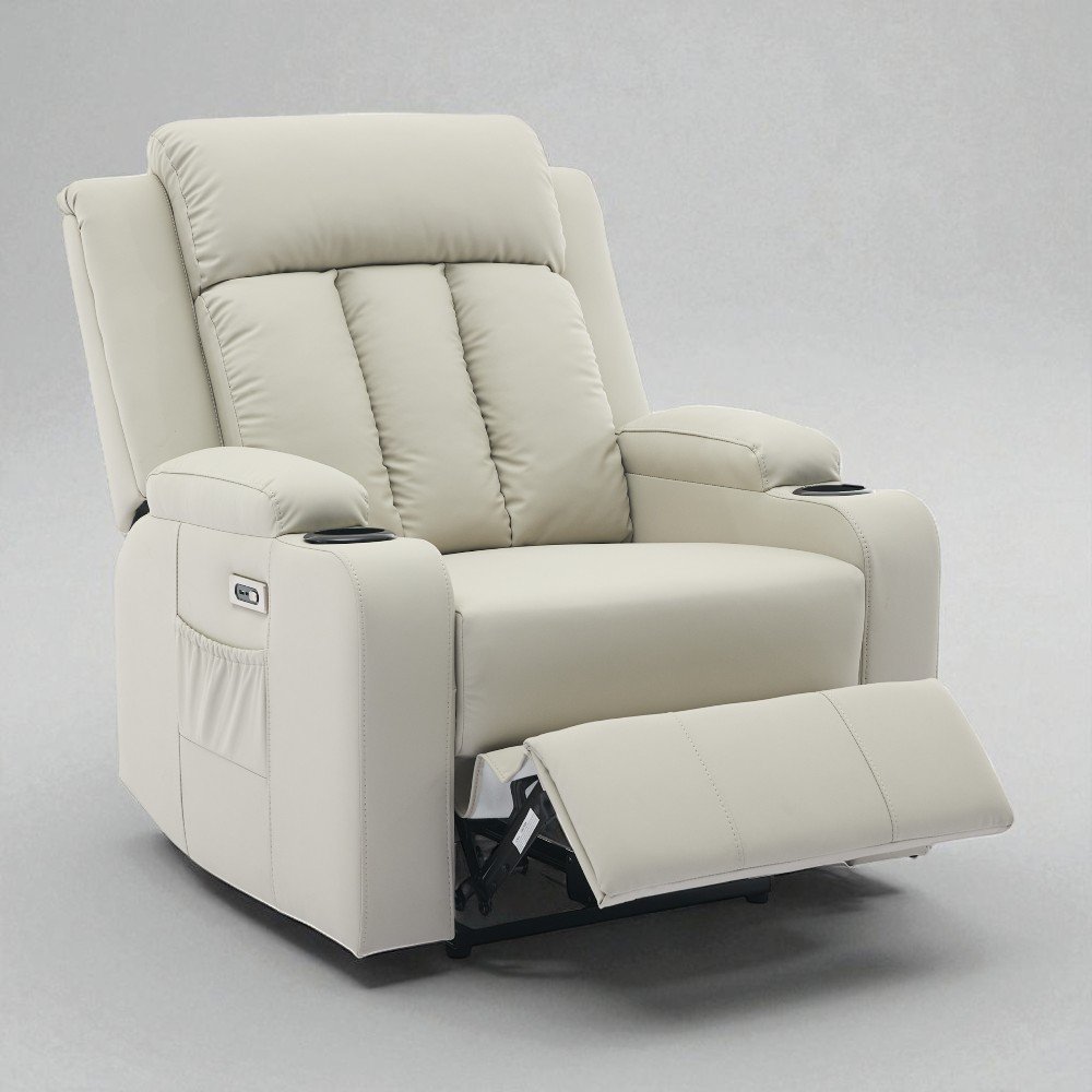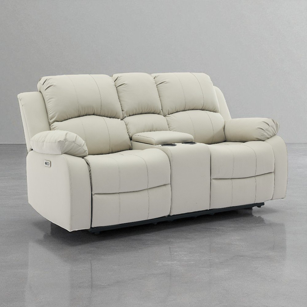 โซฟาไฟฟ้า 2 ที่นั่ง สีครีม โครงไม้เนื้อแข็ง บุฟองน้ำเกรดพรีเมี่ยม หุ้มด้วยหนังวัวแท้ Top Grain ยืดหยุ่น นั่งสบาย สัมผัสได้ถึงความนุ่มนวล ปรับระดับง่ายด้วย Mechanic นำเข้า มีช่องเสียบ USB สำหรับชาร์จไฟ ช่องวางแก้วสเตนเลส 2 จุด และยังมีคอนโซลสำหรับเก็บของ ขนาดเมื่อปรับเอนนอน กว้าง 189 x ลึก 167 x สูง 79 ซม.